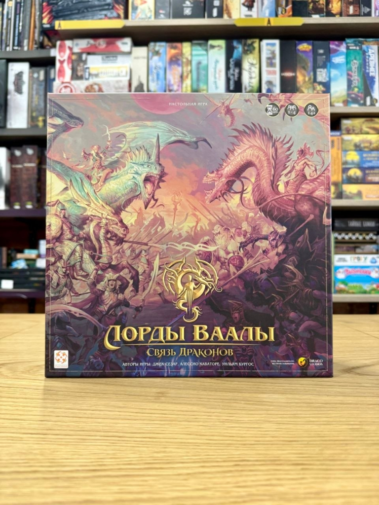 «Лорды Ваалы. Связь Драконов» — это асимметричная стратегическая игра для компании до четырёх человек, действие которой разворачивается во вселенной Связь Драконов (Dragonbond). Здесь вы сражаетесь, нанимаете жителей и захватываете регионы, чтобы получать жетоны силы. В игре две стороны: доблестные Генералы, командующие армиями, и могучие Драконы, сеющие хаос с небес. Но главная интрига не в вечном противостоянии. Судьбу партии решает союз: если Генерал и Дракон устанавливают Связь, их объединённая мощь становится по-настоящему разрушительной.