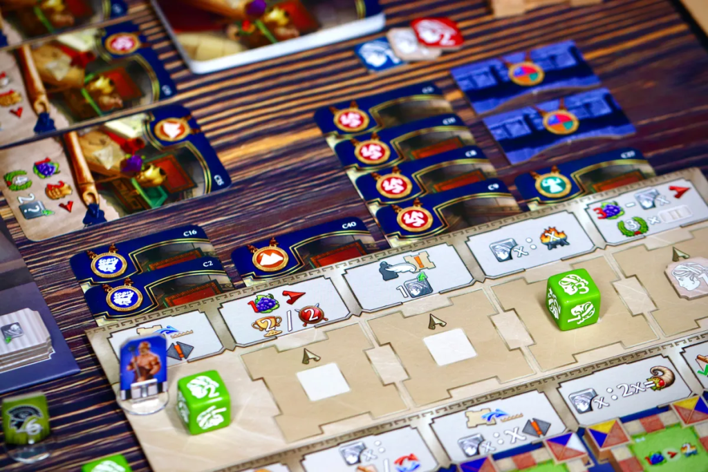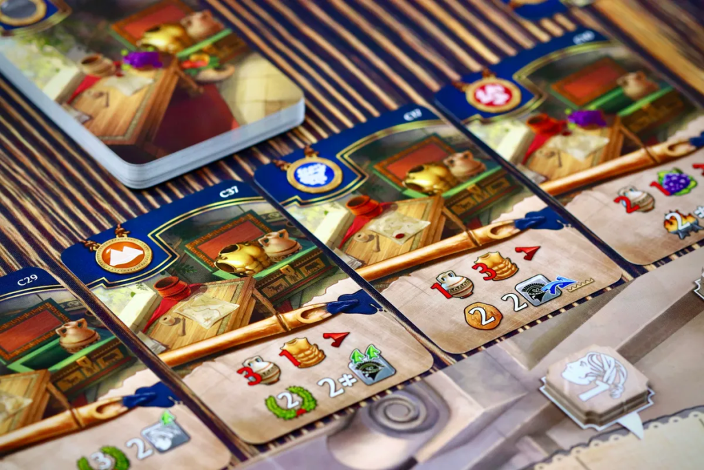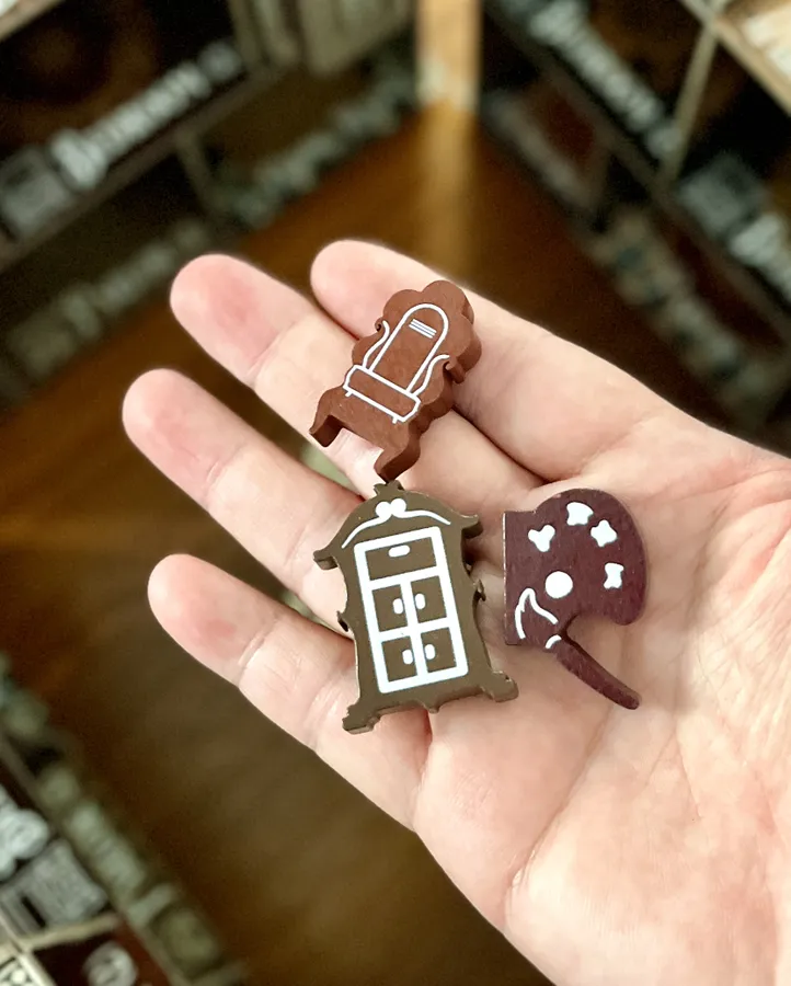 Главная фишка — трехэтажное поместье, которое вы собираете прямо по ходу партии. Внутрь отправляются комнаты, мебель и произведения искусства, а сам дом становится не только красивым элементом на столе, но и частью механики, потому что открывает бонусы и помогает готовить нужные события.